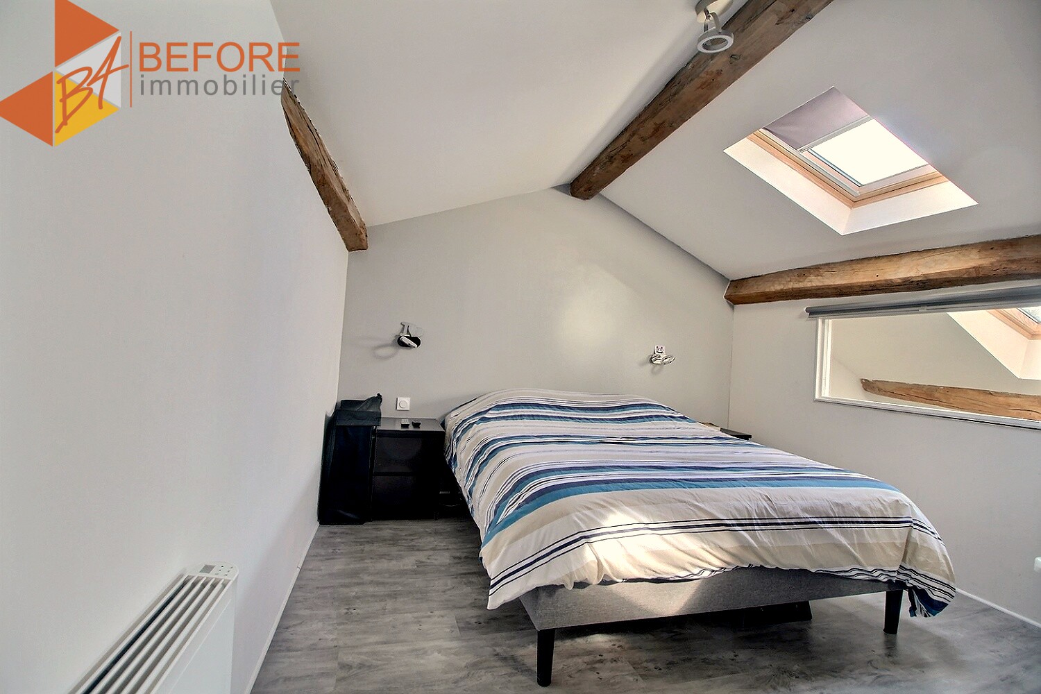 Dans une petite copropriété aux charges très faibles (200€/an) bel appartement refait à neuf en 2015 comprenant au premier niveau une grande pièce à vivre avec cuisine ouverte, coin repas, salon TV, 2 chambres, salle de bains, WC séparé. A l'étage une grande chambre mansardée avec un dressing de 20 m². Vendu avec une cave de 5m².