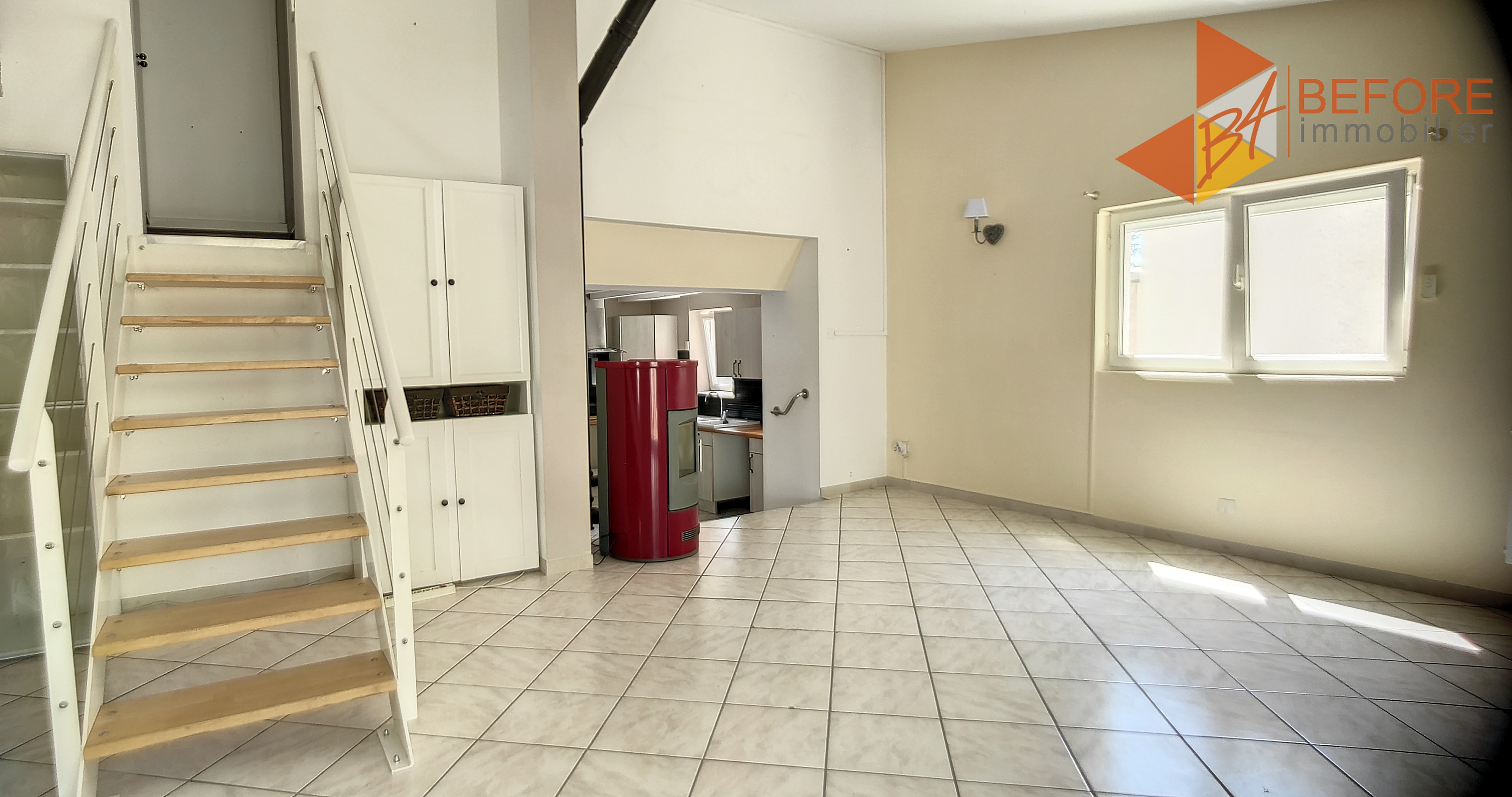 Dans une rue avec très peu de passage, petite maison très agréable avec une pièce de vie de plain-pied et cuisine en contrebas. La pièce de vie est très lumineuse, avec 2 portes fenêtres qui donnent à l'extérieur. 2 marches pour descendre à la cuisine, qui reste équipée, sauf électro-ménager, à prévoir. La salle de bains est également à ce niveaux. A l'étage une chambre et un bureau.