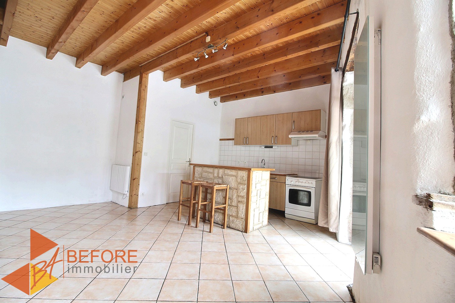 En plein centre village, avec toutes les commodités à proximité (commerces, santé, démarches, loisirs, sport..) maison de village sur 3 niveaux, comprenant au rez-de-chaussée une grande pièce à vivre avec coin cuisine et WC séparé, au premier étage, 2 chambres, salle de bains et 2° WC, au deuxième étage un bureau mansardé pouvant faire office de chambre d'appoint, et un grand grenier.