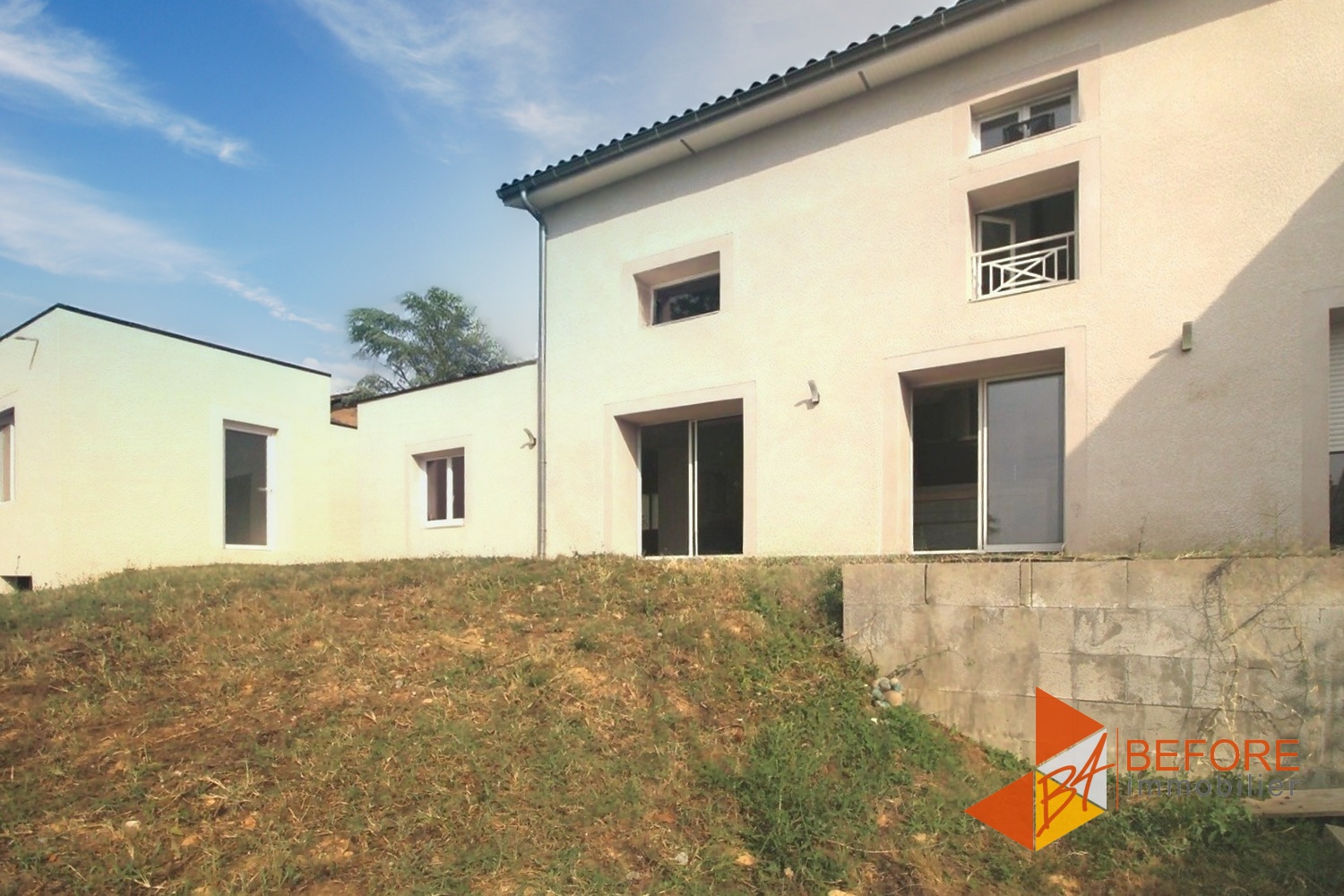 Accès direct sur la terrasse. Le terrain de 1200 m² est piscinable.