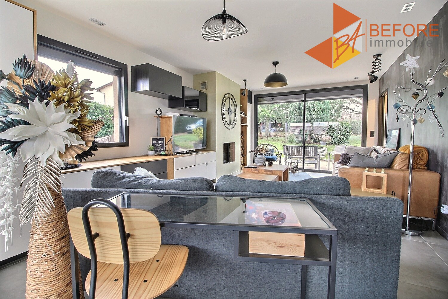 Au rez-de-chaussée, le hall d’entrée avec dressing et multiples rangements permet l’accès à la pièce à vivre de 66 m² avec une très belle cuisine équipée, très fonctionnelle et conviviale, celle-ci est séparée par une belle verrière semi-coulissante de type industriel, l’ensemble est baigné de lumière. Les baies vitrées donnent accès à la terrasse bétonnée et sa piscine au sel de 9 X 4,5 avec pool house.