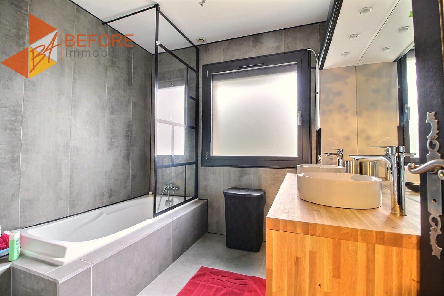 Au premier demi-niveau on trouve 3 chambres de belle taille dont une avec placard mural, une très belle et grande salle de bains.